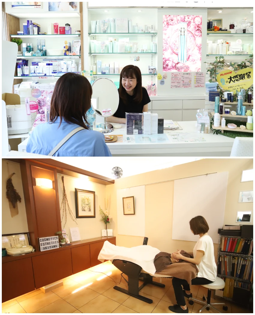 化粧品&エステあきやまは、化粧品販売とエステを取り扱う専門店です。お客様お一人おひとりに寄り添い、あたたかいお店を目指しております。お客様の毎日がより、笑顔あふれるものとなるよう、スタッフ一同お手伝いいたします♪